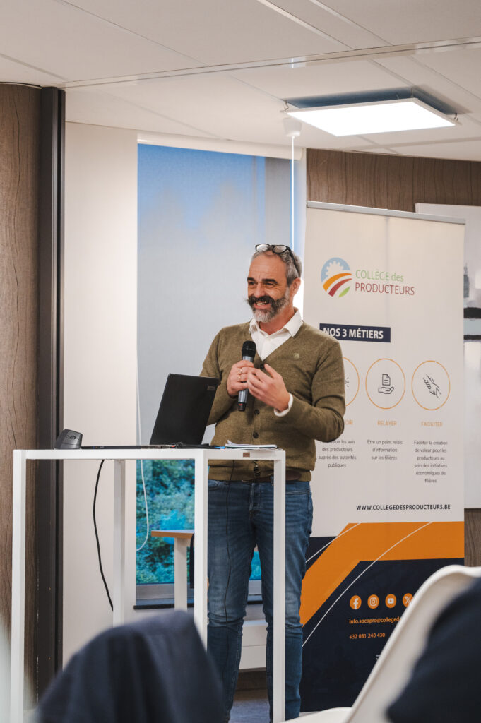 Dans l’introduction, Emmanuel Grosjean, coordinateur du Collège des Producteurs, a répété l’objectif de cet après-midi : nourrir la réflexion sur la résilience du secteur agricole wallon face aux instabilités durables et aux chocs mondiaux, avec un focus sur les tendances macroéconomiques et les solutions que les producteurs et les acteurs des filières mettent en place.